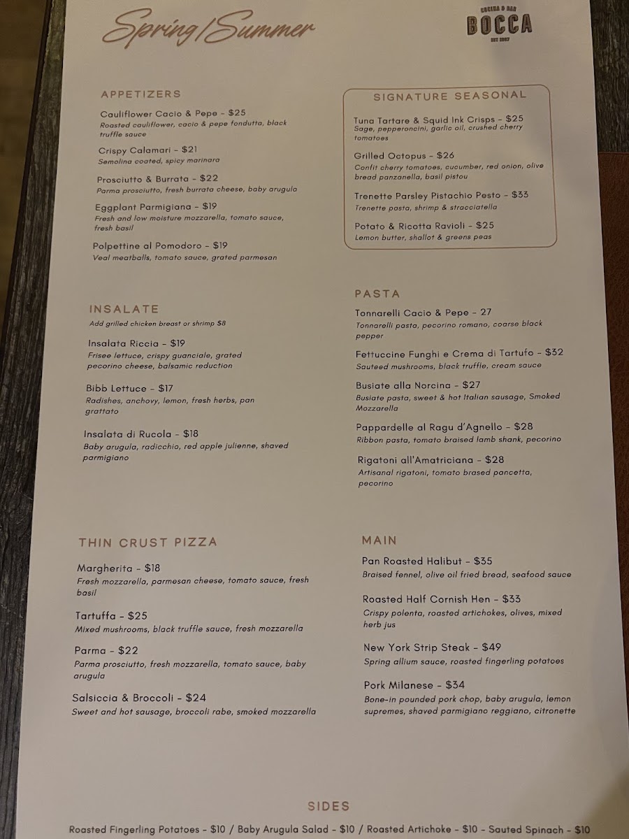 Guests appreciate the thoughtful approach to group dining, ensuring seamless service and personalized touches for special events. Accommodating dietary restrictions and offering exquisite custom prix fixe menus reflects Bocca's commitment to customer satisfaction.