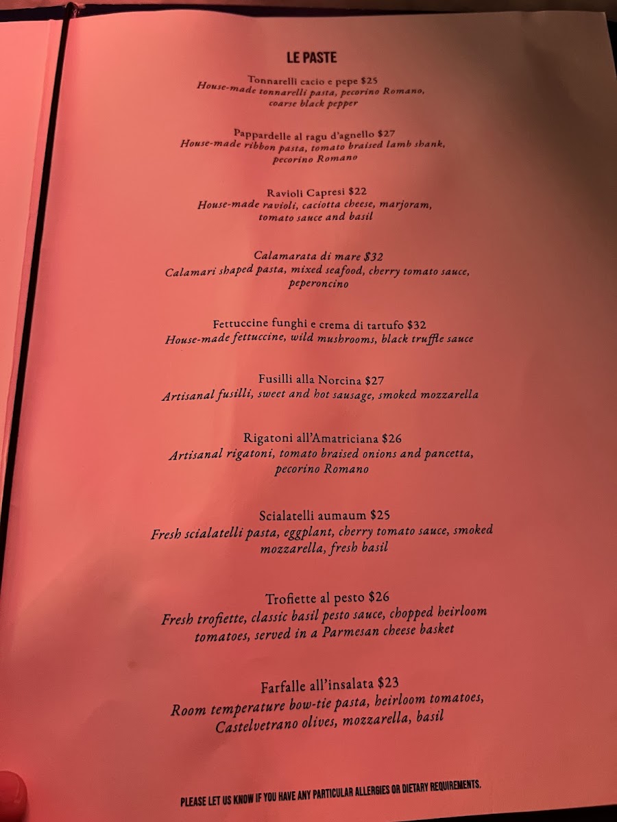 House made tonnarelli served table side, pecorino Romano, coarse black pepper